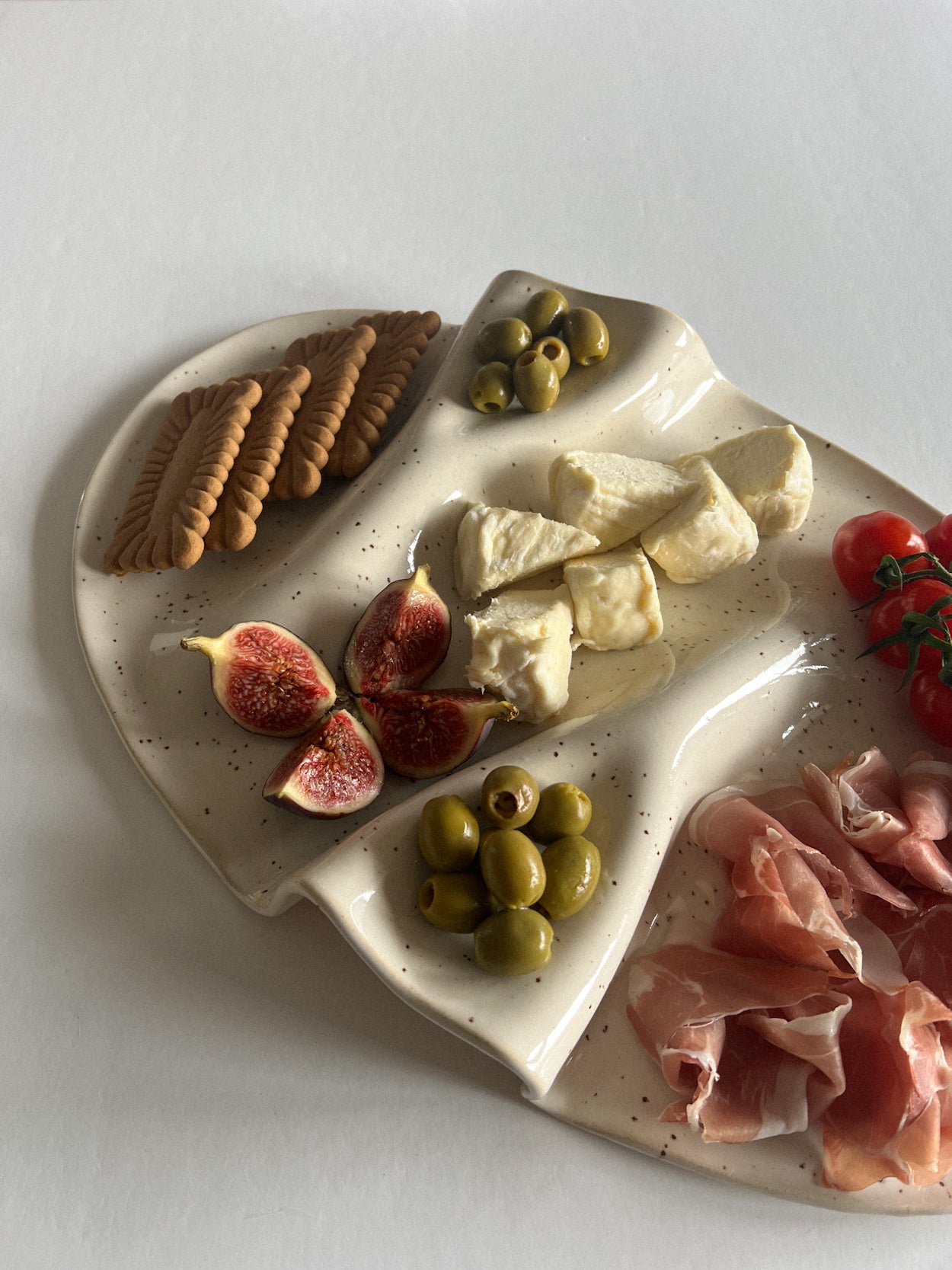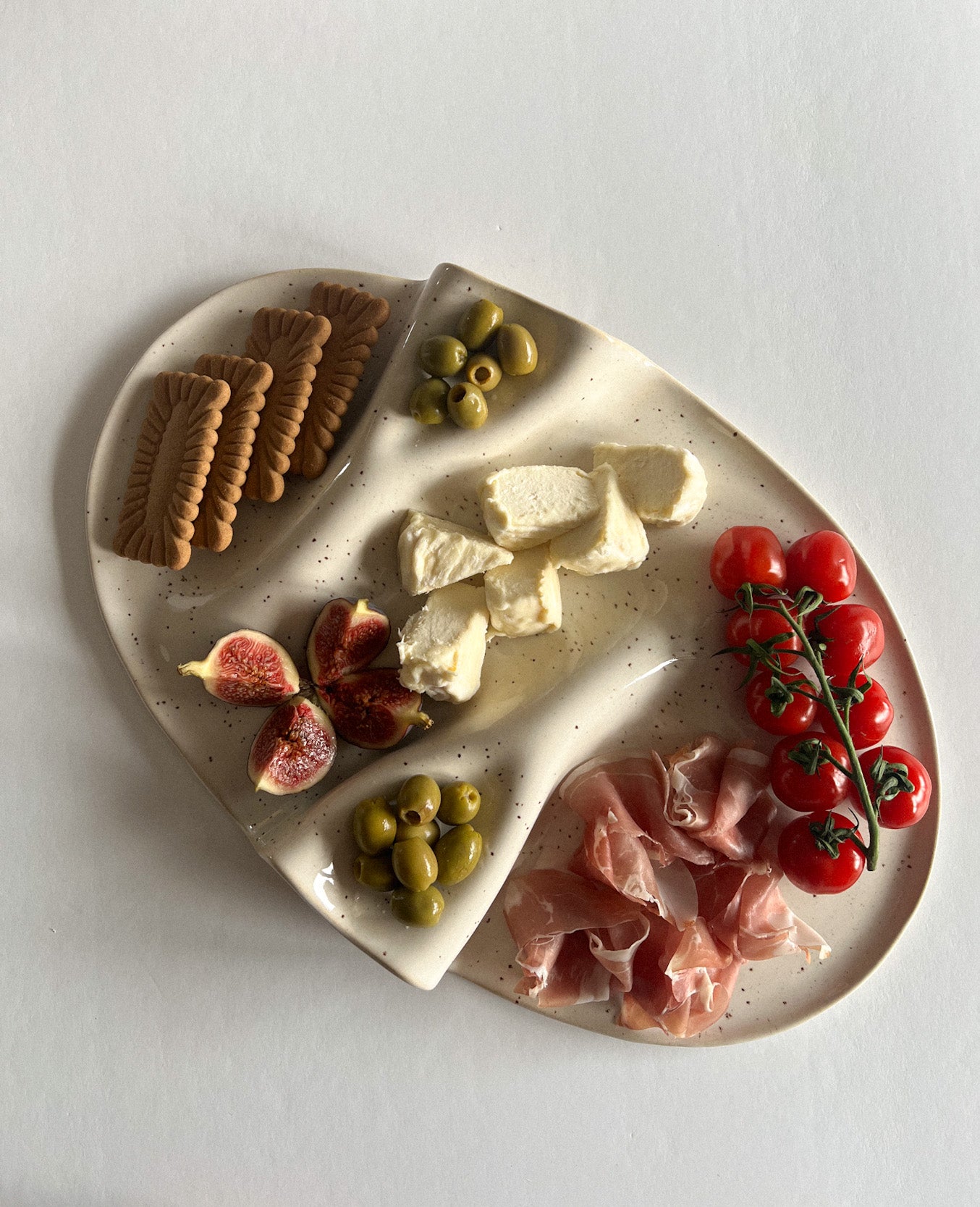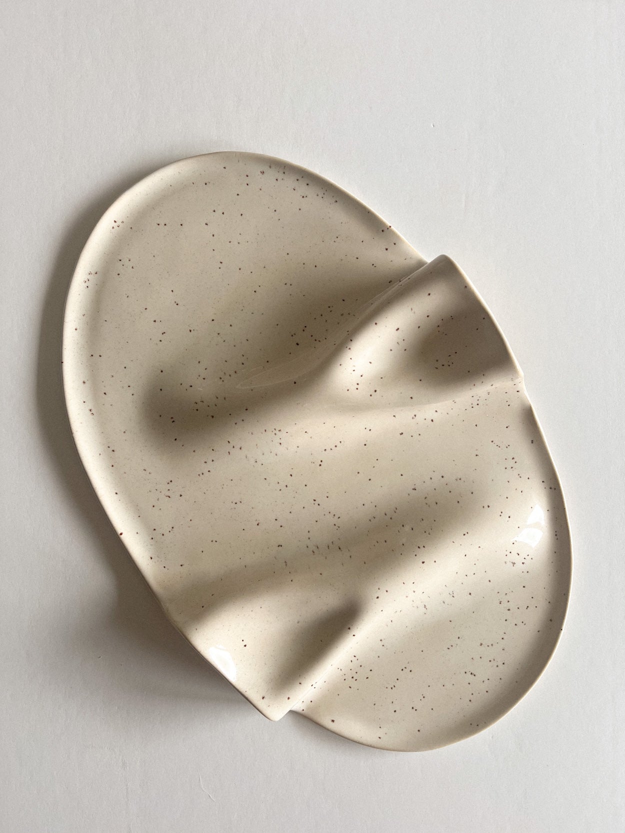 Patera na przekąski WAVY no. 12 w kolorze bardzo jasnego beżu nakrapianego.